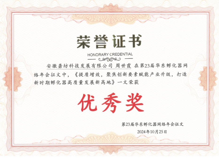 這是園區(qū)第二次獲此殊榮,作為安徽省唯一獲得優(yōu)秀的孵化器,這是協(xié)會(huì)對(duì)園區(qū)孵化工作的肯定,下一步,園區(qū)將繼續(xù)優(yōu)化孵化服務(wù)體系,深入聚焦創(chuàng)新資源,培育新質(zhì)生產(chǎn)力,為推動(dòng)區(qū)域創(chuàng)新生態(tài)和科技企業(yè)高質(zhì)量發(fā)展貢獻(xiàn)力量。