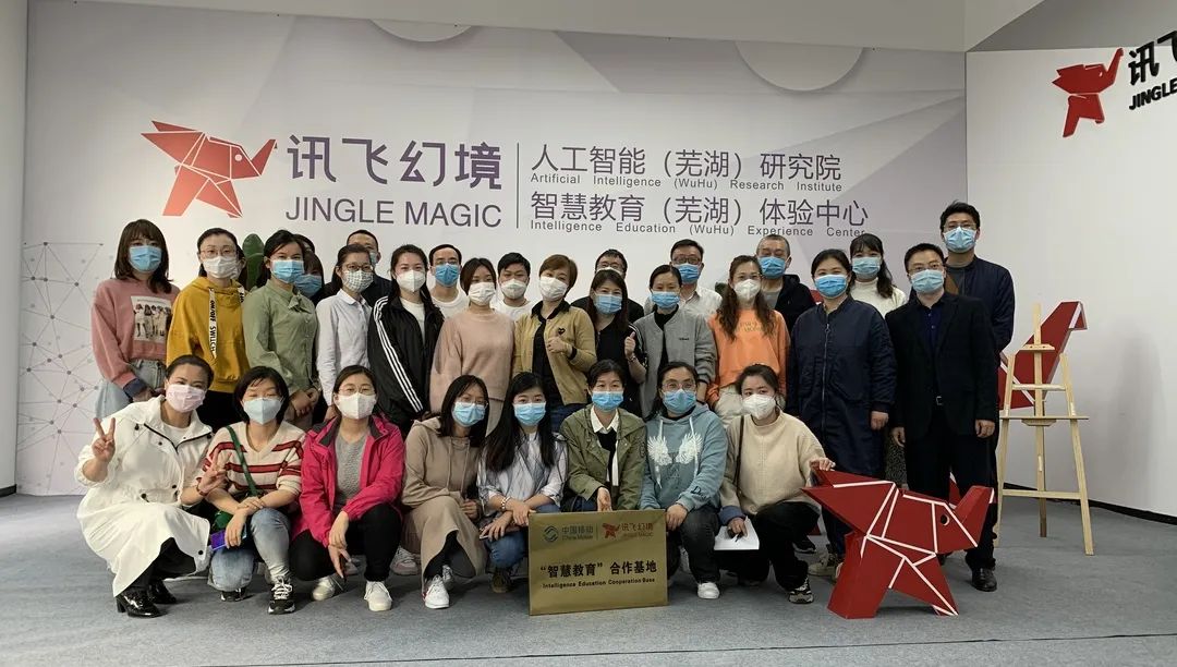 鏡湖區(qū)副區(qū)長束曉偉及政府領(lǐng)導(dǎo)、相關(guān)單位負(fù)責(zé)人,訊飛幻境政企事業(yè)部執(zhí)行總裁李寧、中國移動蕪湖分公司總經(jīng)理?xiàng)钫鸬瘸鱿⒁娮C簽約儀式,共同為雙方“智慧教育合作基地”揭牌。