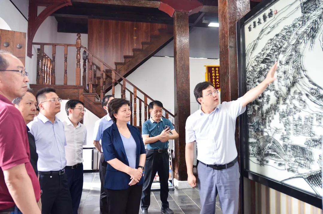? 調(diào)研組一行首先來(lái)到園區(qū)益新面粉大樓,園區(qū)功能性黨委書(shū)記、總經(jīng)理卞國(guó)琛在鐵畫(huà)作品《百年大礱坊》前向調(diào)研組介紹百年前蕪湖青弋江兩岸繁榮興盛的景象,講解益新面粉廠131年的風(fēng)雨歷程,以及大樓如何整修與保護(hù)。調(diào)研組在大樓四樓駐足觀賞原華中師范大學(xué)校長(zhǎng)章開(kāi)沅老先生的題詞,上面寫(xiě)道:“飲水思源,日新又新”“百年益新面粉廠,日新礱坊科技園”。